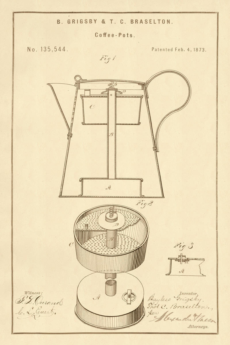 VINTAGE PATENT ILLUSTRATIONS: COFFEE POTS, 1873
