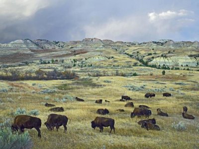 American Bison herd grazing on praire, Theodore Roosevelt NP, North Dakota