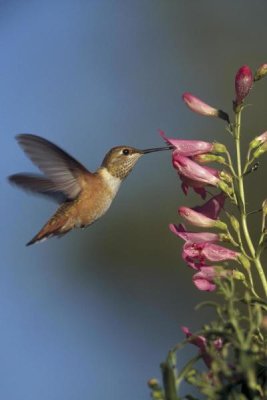 Rufous Hummingbird juvenile feeding on flowers, New Mexico